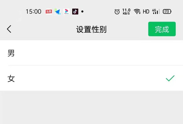 第四步,就会看见第一个选项就是【性别】,单击就可以更改性别,微信的性别就更改完成了。