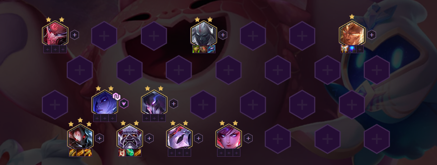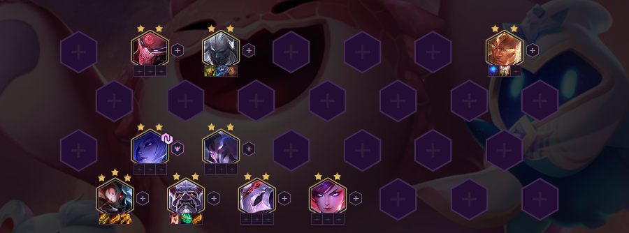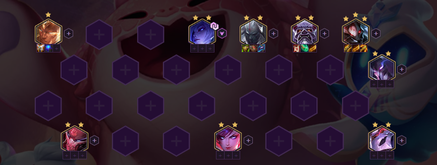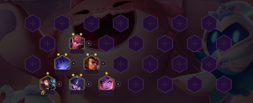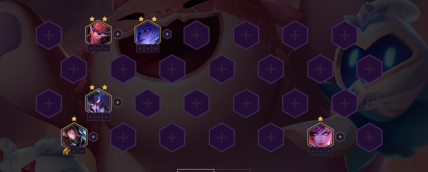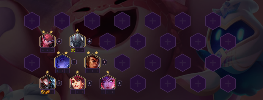 5人口优先凑出6腥红羁绊,召唤2星加里奥。2星加里奥在2、3阶段具有统治的实力,如果凑不出6腥红之月可以增加补决斗、羁绊增加伤害。