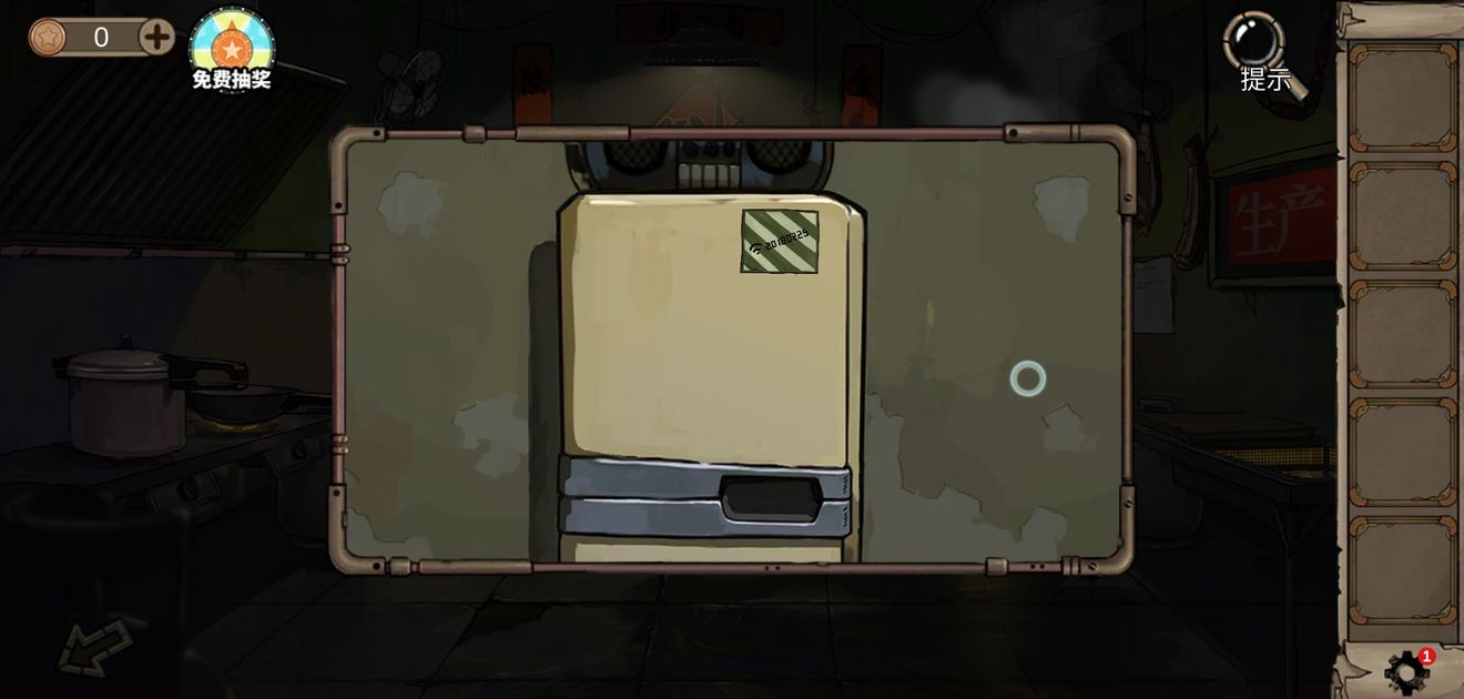 进入004房,在左下角的钱币堆里找徽章,再在柜子中间最上面那格,拿到把手和纸条。