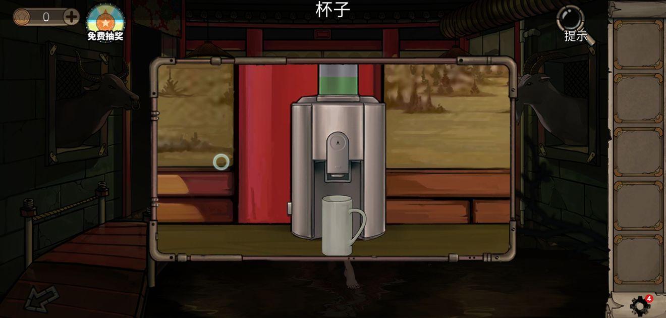进密码房后,会拿到干草和扳手,对照天花板的图案调整罗盘(注意眼睛睫毛的方向),就能得到第一个齿轮,然后从星象仪桌子下面的箱子里,拿到杯子。