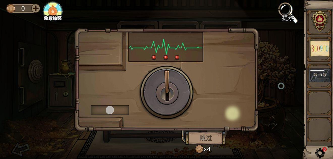 进入005房,点击吉他获得一盘空磁带,再把美元给005房的人,获得开锁器,然后用开锁器去开004房的保险柜,这里需要完成一个小游戏。