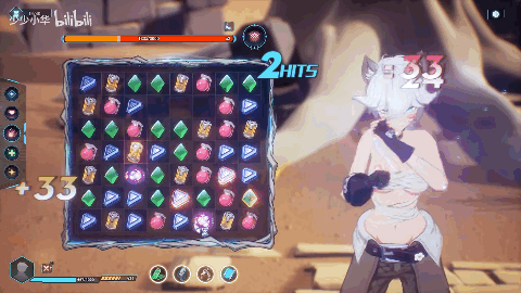《Mirror》能够让不少玩家乐此不疲的主要原因,除了各个章节送上的“福利”,后期的主要乐趣便来源于挑战模式。面对不同角色需要及时调整宝石技能以及场外道具,让消除的快乐变得更富挑战性,这个模式同样也复刻在了《Mirror2》中,尽管受限于游戏开发进度目前挑战模式的角色不多,但那份乐趣和挑战性并没有因此损失太多。