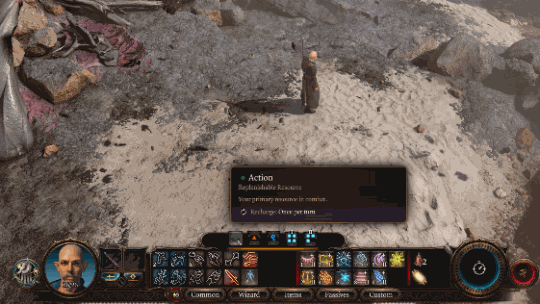 看看这全新的快捷栏,如你所见,现在的快捷栏由若干个可移动/可隐藏的“面板”组成,这样的设计减少了屏幕上的冗余信息。每个面板由一组行动子集构成:法术,物品,武器动作等等。在快捷栏内部,你可以对特定行动进行筛选 - 从附赠行动或使用法术位的行动,到职业限定例如术士技能和狂暴天赋。此举是为了使你的屏幕在任何时刻都保持简洁易用,并确保你能轻易获得你所需要的信息。