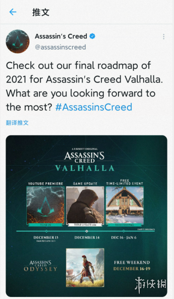 《刺客信条:英灵殿》与《刺客信条:奥德赛》的联动故事将于今晚8点更新,所有购买了游戏的玩家均可免费游玩。育碧官方也宣布将于12月16号至19号开启《刺客信条:奥德赛》的免费周末,届时没有购买游戏的玩家也能进行持续4天的免费体验。目前育碧中国暂未宣布限免消息,不过育碧游戏的免费周末一般都是全球同步的。