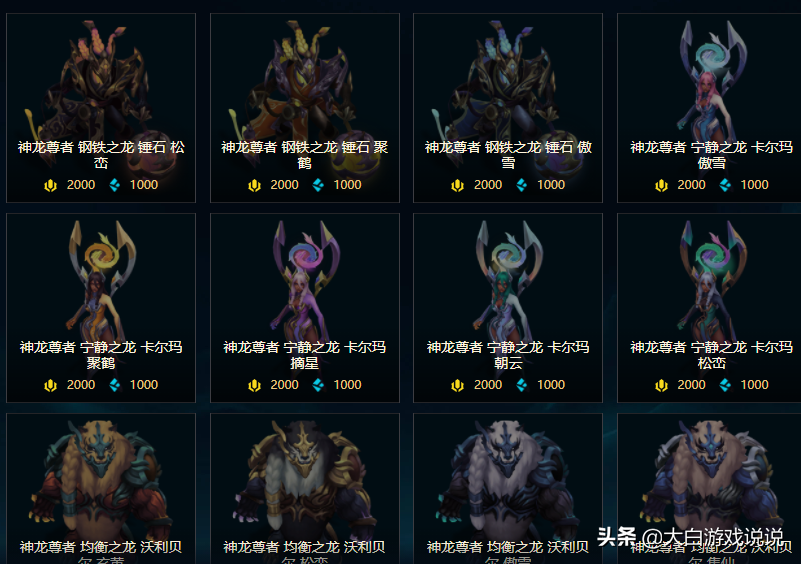 神龙系列的原画很美,也算是比较新的一个系列,这次能1000蓝色精萃入手一个绝对是纯赚。如果当时候打包购买原皮的玩家,这次也建议打包全部换了。