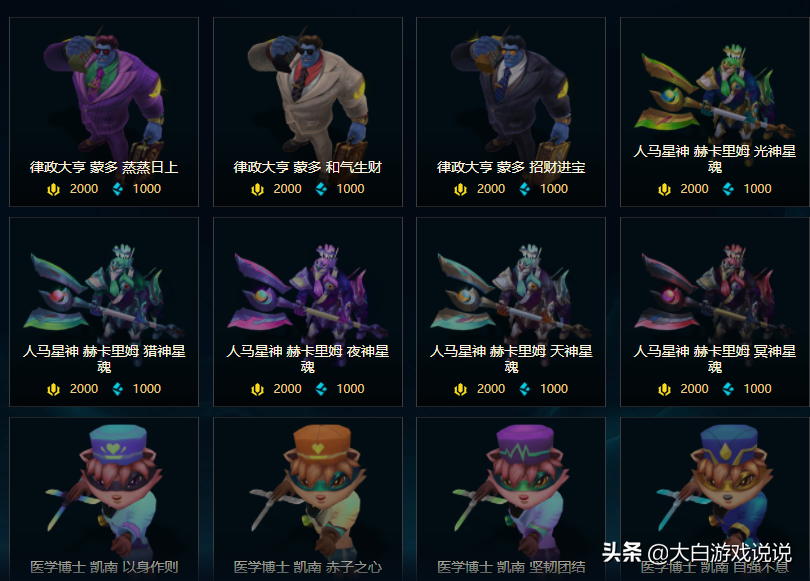 这款系列是一些紫色宝箱或者抽奖的常客,获取的门槛不算高。胜在便宜大碗,涵盖的英雄较多,属于性价比很高的一个系列。