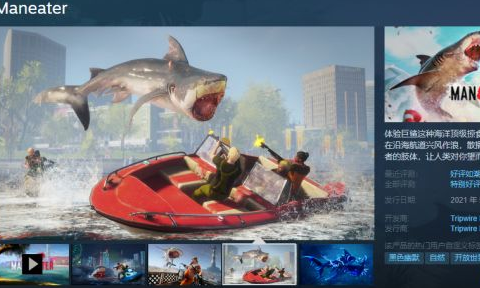 在Steam上直接搜索大白鲨是搜不到的,需要在搜索框输入Maneater即可找到。