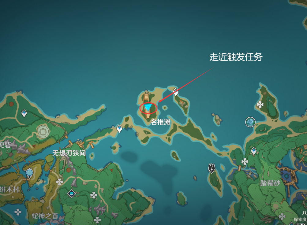 来到八酝岛区域——名椎滩,走近断船触发,