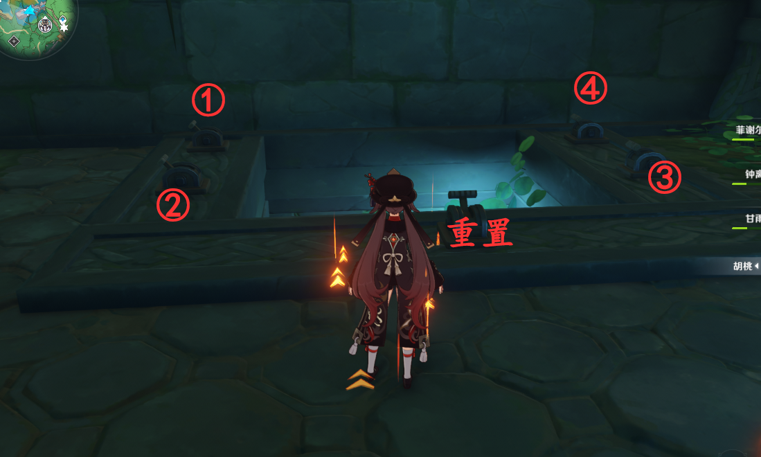 第三层机关,按编号顺序(1-3-4-2)或者(3-1-4-2)依次开就能把全部闸门打开了,下面有一个武士怪,和一个墓碑,