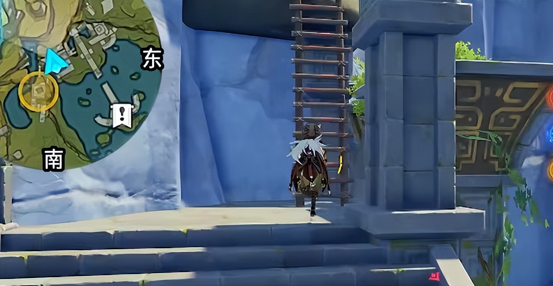 2、任务触发需要在下方箭头所指的位置,可以在遁玉陵下方的七天神像这里过去。