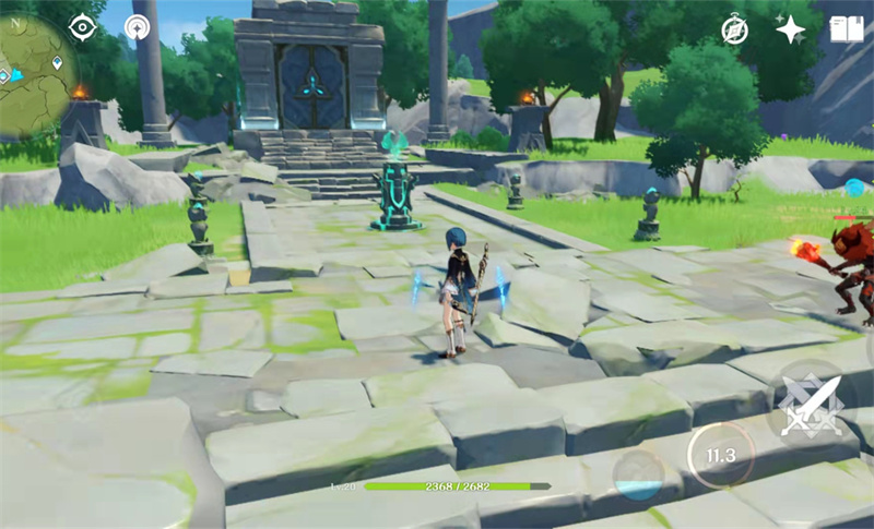 第二个比较有意思的就是剑冢的三层封印,其实这个任务不算是太难,把它放进来只是因为它耗费的时间比较多,这个任务要和NPC对话才知道解开封印的方式,解开三层封印的关键就是打败三个丘丘人的部落,其中有一个部落还需要激活隐藏的圆盘限时挑战,这个挑战在前期还是有一些难度的,主要是时间太短,在没有抽到伤害性角色时通常要多次挑战才能成功。
