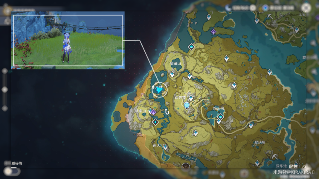 在如图所示位置击败风史莱姆获得被风史莱姆吞下的竹笋。