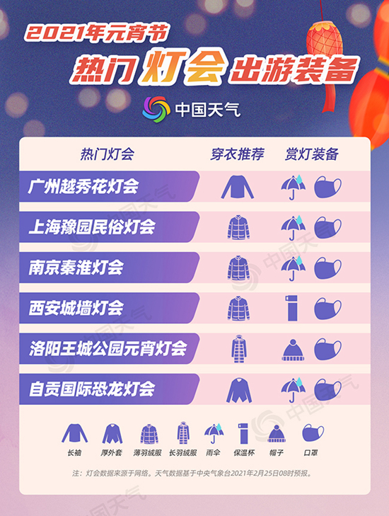 此外,我国仍在疫情防控期,热门灯会大多需要提前预约,中国天气网提醒大家提前查询相关要求做好准备,赏灯时戴好口罩。