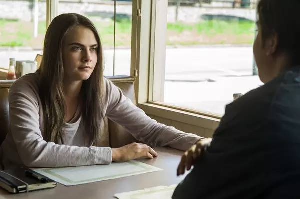 饰演堕落女王的是曾是模特的Cara妹子——卡拉·迪瓦伊。上图的造型可以说是颠覆了Cara此前一些小清新电影中的样子。