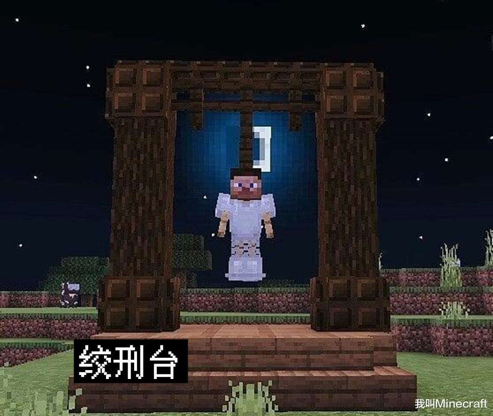 或者我们可以选择绞刑台的改进版本,一个用《我的世界》最新版方块的锁链打造而成的断头台。红石元件在这里自然是不具备红石的传输特性,但建筑却可造成锁链可控的假象。锁链升起,史蒂夫卒!