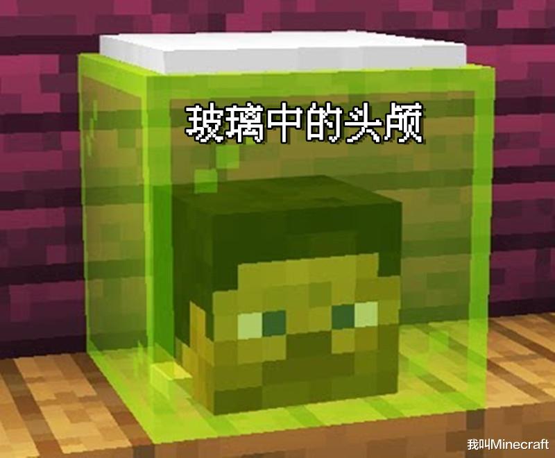 一个众所周知的事实就是,玻璃可以通过活塞挤压的方式,将任何实体都套在玻璃当中。例如此前我们将鹦鹉装在玻璃中,实际上也是挤压的方式。而这里你只需要将头颅安装在盔甲架上。