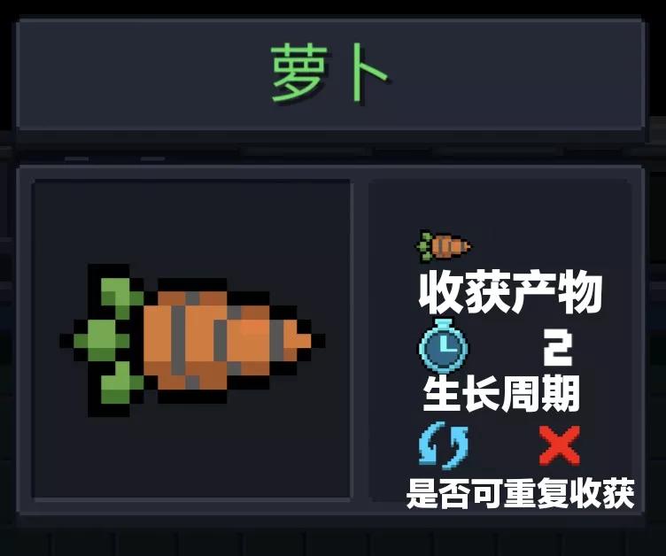 收获萝卜,2天成熟,一次性