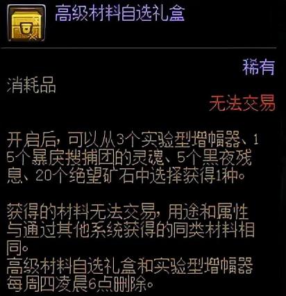 减负版本后,无论是黑鸦之境周常副本还是黑鸦之境日常副本在产出原有的遴选材料:绝望矿石和恐怖之瞳的同时,还会产出帐绑材料:浓烈的绝望矿石和绯红恐怖之瞳(可在NPC朱蒂·灵伍德处兑换成绝望矿石和恐怖之瞳)。