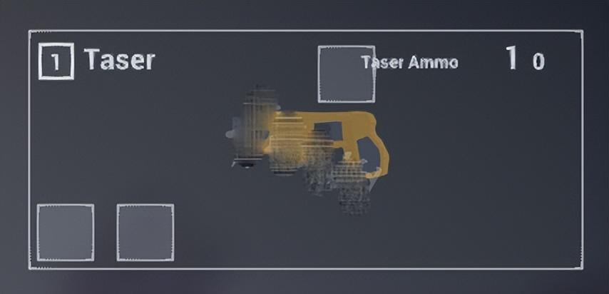 伤害:N/A弹夹容量:1装弹速度:快,一秒子弹速度:极慢,25m/s射速:扣下扳机就射后坐力:基本上没有,不过射程只有15-20m射击模式:半自动子弹类型:泰瑟枪弹药特性:击中敌人将使敌人晕眩4秒。备注:合理利用效果拔群。特殊手枪手持加农炮