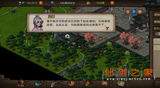 我们会发现墨归还没有死,而这谷内还可以找到一个大宝箱(11,6),从(12,9)使用轻功跳上(12,6)然后左走一格,