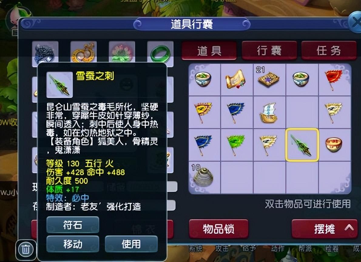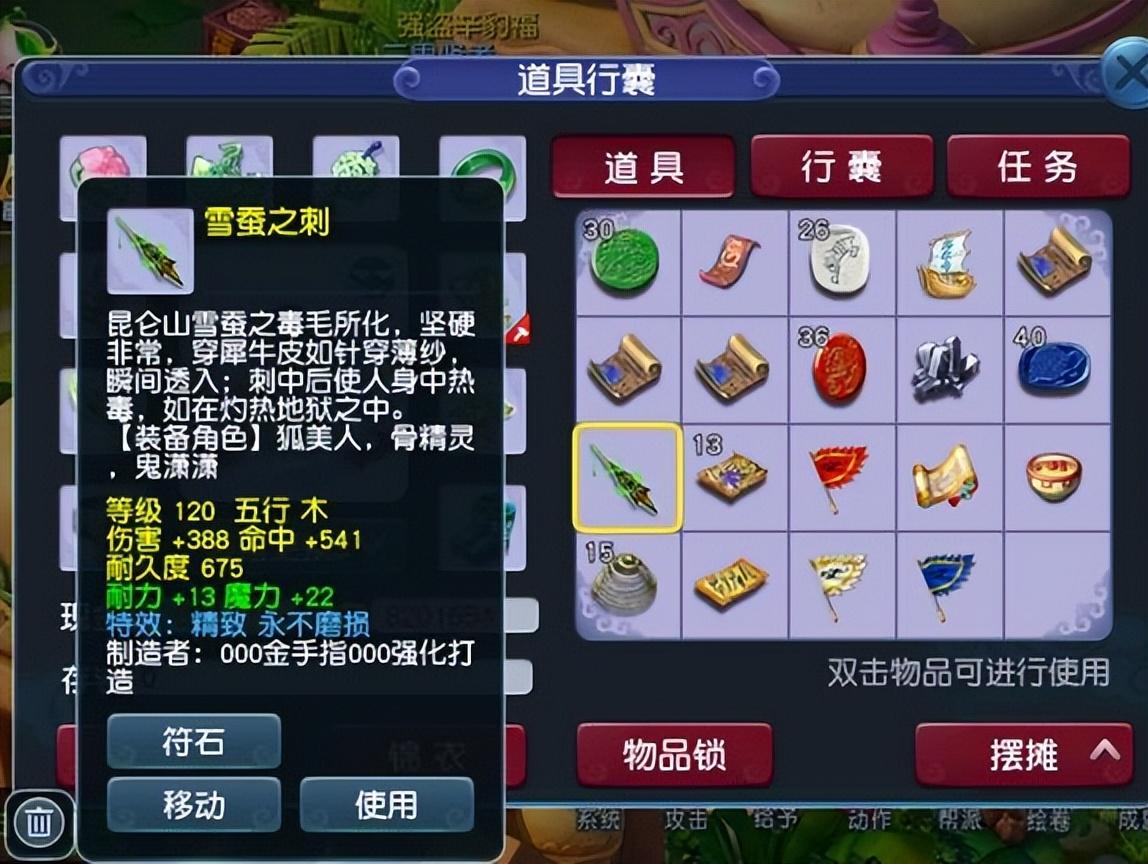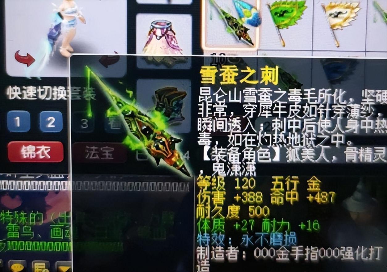 收获了一把附加双特效的120级爪刺武器,精致与永不磨损特效,同时附加了魔耐双加35,但是附加的属性太尴尬。