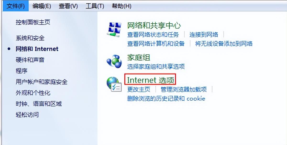 3、点击Internet选项,如下图所示: