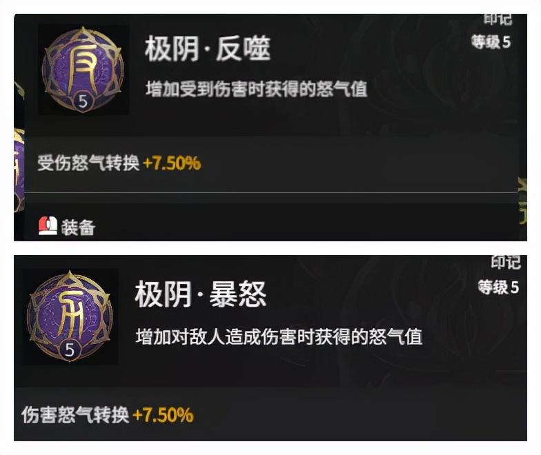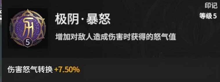 所以还不如选择“对敌人造成伤害获得怒气值”这个印记,我们可以利用远程武器刷刷伤害,顺便回复下怒气。