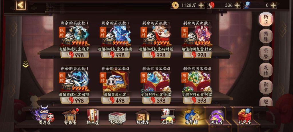 提升起来,然后勾玉先不要去抽卡,先去商店买商店御魂,破势,狂骨皆可如图