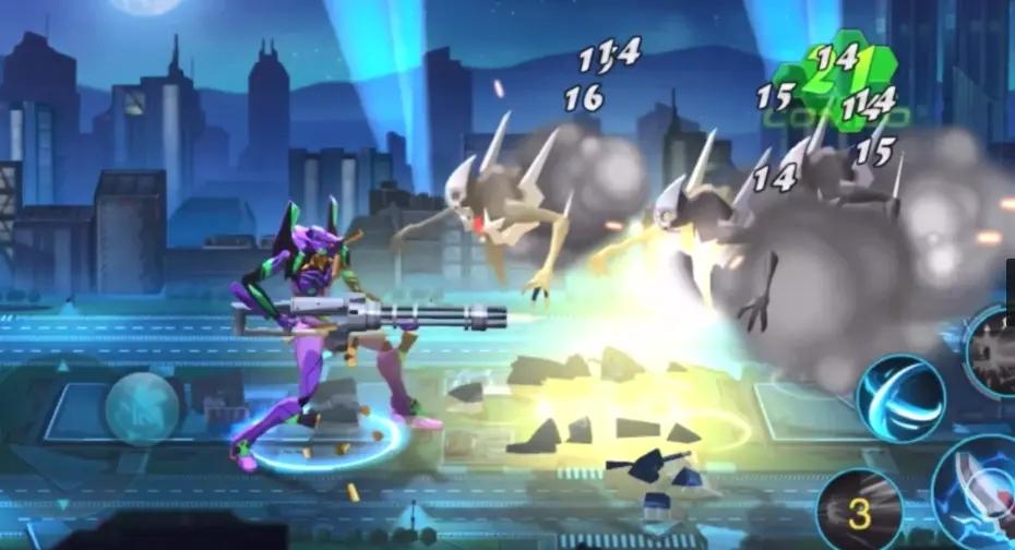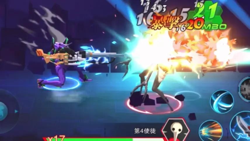 这款手游当时给我的第一感觉还是非常惊艳的,Eva机体脚踏大地的那种碰撞的声音,正是我之前看动漫时,看着0号机出战的那种熟悉的声音。在2017年那个遍地都是卡牌游戏的年份,破晓用2D渲染3D的画面,做出的一款动作手游,确实让人眼前一亮。招数也还原了EVA原作的精髓。EVA里出现的机体,几乎都囊括了进来。