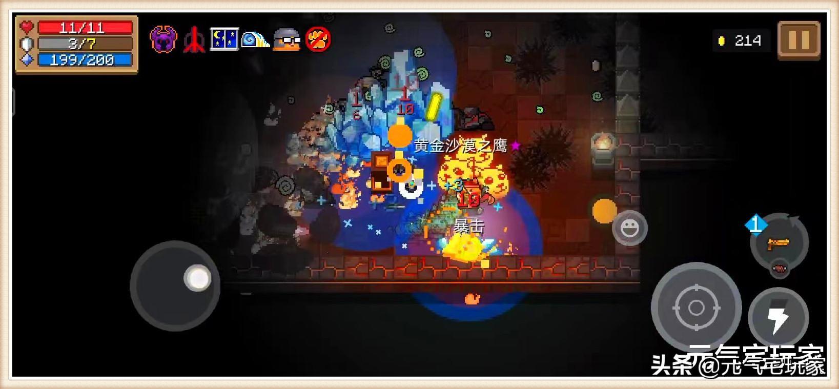 虽然在《元气骑士》中,能将武器威力成倍强化的职业技能不少,但是能做到切换武器却不解除技能状态的却并不多。所以老宅在评估所有条件后,建议大家选择骑士3技能混沌打击作为黄金沙漠之鹰的持有者,至于具体原因,将在下一阶段的操作技巧中为大家揭晓。