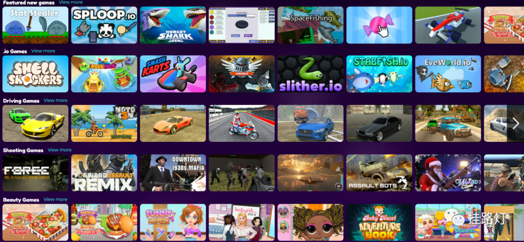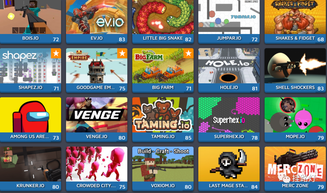1.io游戏站 io游戏一般是指一些多人大乱斗游戏,比如球球大作战,蛇蛇大作战等,这些游戏的特点就是多人同一地图,竞技PK,游戏时间短,死亡后重新发育继续作战,非常适合上班摸鱼。