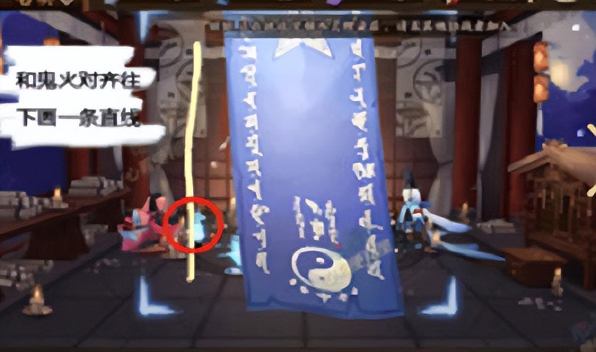 1:如图所示,和鬼火一样对齐,然后我们往下面画一条直线就可以了,从图片中你们可以清晰的看到的;
