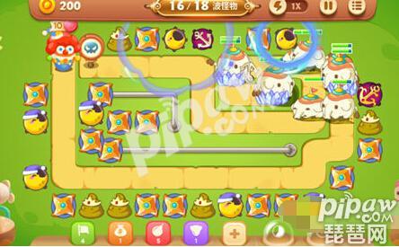 关卡11-18波,调整炮塔群的输出配置,关键时刻可以使用小丑技能哦!在全图建设15-20座忍者镖炮塔、6-8座月亮炮塔、5-8座便便炮塔、3-4座船锚炸弹炮塔,调整后的炮塔群输出更给力,火力也更集中!关键时刻,可以宠物技能加小丑技能齐发来打掉它们的攻势啦!