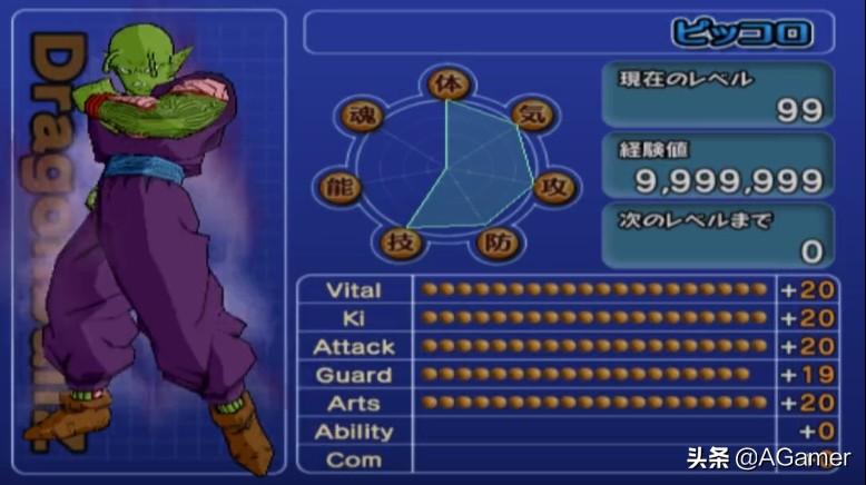 武道会系列还有一个非常有特色的地方在于,明明是格斗游戏却加入了RPG的成长要素。通过一场场战斗可以获得经验、道具、技能、隐藏人物等奖励。经验可以给自己喜欢的角色升级六项能力,技能可以装备给对应的角色。武道会系列有着打怪升级,培养自己角色的另类玩法。