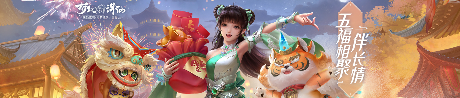 虎啸神州,五福相聚!《梦幻新诛仙》春节资料片“虎啸神州”1月20日正式上线!与全新角色男女合欢一起共赴寅虎庙会,体验传统民俗,畅玩精彩游戏,虎年神兽登场等你带回家;春节主题外观、家具上线,快来新年换新衣!游戏等级解锁,全新剧情来袭;95级灵兽正式开放,等你选择新的伙伴;钜惠礼包放送,超多福利等你来拿!