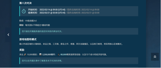 虽然在第八次对决中,上述战列舰并不能参赛,但其特点可以帮助我们快速选择适合的战舰来赢得比赛。需要注意的是,2V2模式更考验队友的默契程度,可以提前组队配合练习,也可邀请自己的好友默契度更好。大量的煤炭、银币和指挥官经验在等待你!