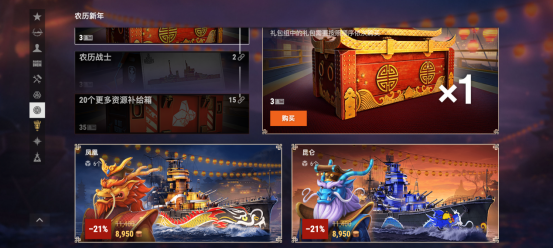 虽然春节长假已过,但在《战舰世界》中年味依然浓郁。军械库中有凤凰、昆仑的新年礼包和农历新年高级补给箱等待玩家们选购。现在还有情人节之火、元宵节活动可以参与,来《战舰世界》体验对战的乐趣吧!