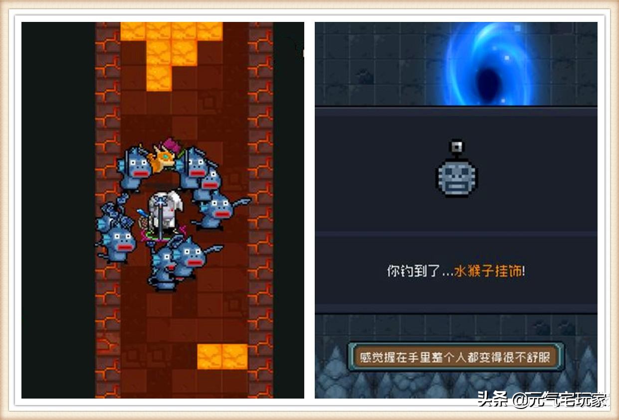 就拿在4.0版本中登场的“什么玩意儿”成就来说吧,单从这个名字,大家就不难发现其中所隐藏的“搞怪”元素。在《元气骑士》中,玩家可以通过钓鱼、配件兑换券等方式获得“水猴子挂饰”,将其装备后便可召唤三只会玩“花手”的水猴子围绕身边,每只水猴子可抵挡一次弹幕,如果全部消失,大概二十秒左右可重新召唤。