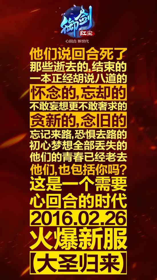 新服角色预创建正在火爆进行时,现在预约更有好礼相送。七大活动助威新服,多重奖励拿到手软。今日19时,《御剑红尘》猴年新服“大圣归来”等你征服!