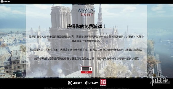 昨晚育碧宣布在自家Uplay平台免费赠送《刺客信条:大革命》PC版,并捐献50万欧元帮助巴黎圣母院的复原,让众多玩家大呼“阿育良心”。