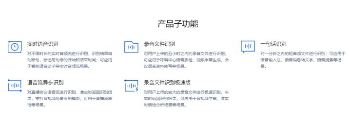 腾讯云提供的识别功能有实时语音识别、录音文件识别、一句话识别、语音流异步识别等,主要针对的就是语音/录音的文字识别。