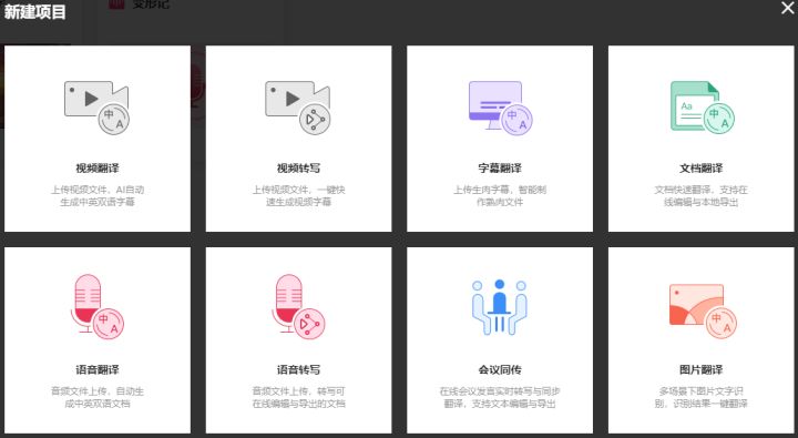 网易见外工作台是一个基本免费的听翻平台,它有视频翻译、视频转写、字幕翻译、文档翻译、语音翻译、语音转写、会议同传、图片翻译等多种功能。