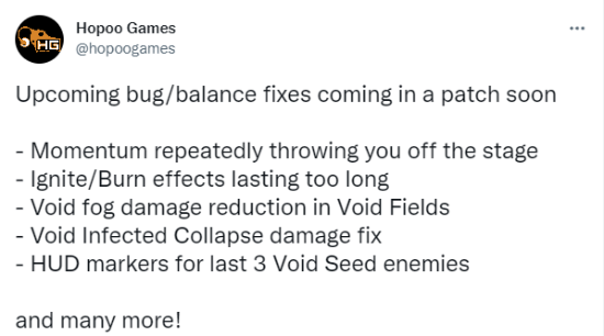 今日,Hopoo Games宣布将发布《雨中冒险2》的新补丁,用于BUG修复和平衡性调整,其中大部分问题来源于新的DLC。