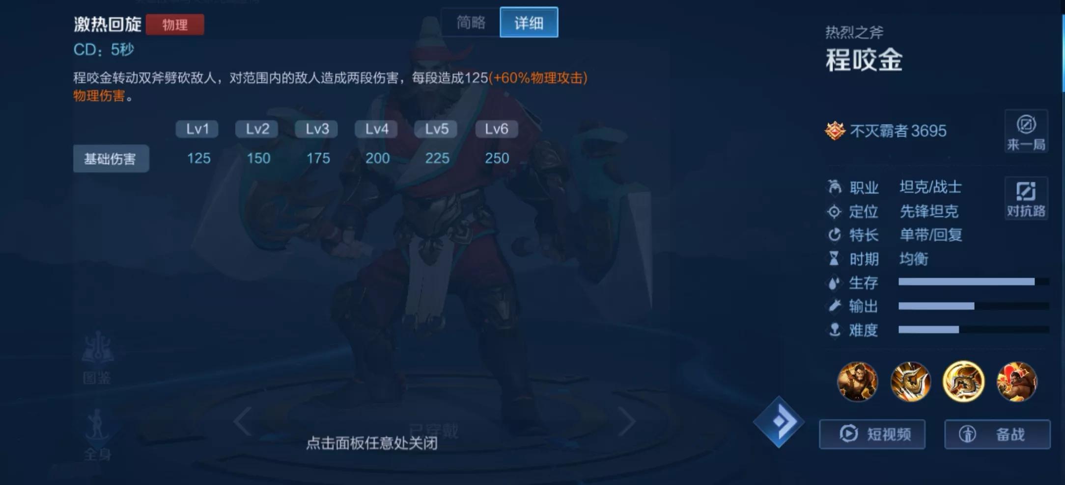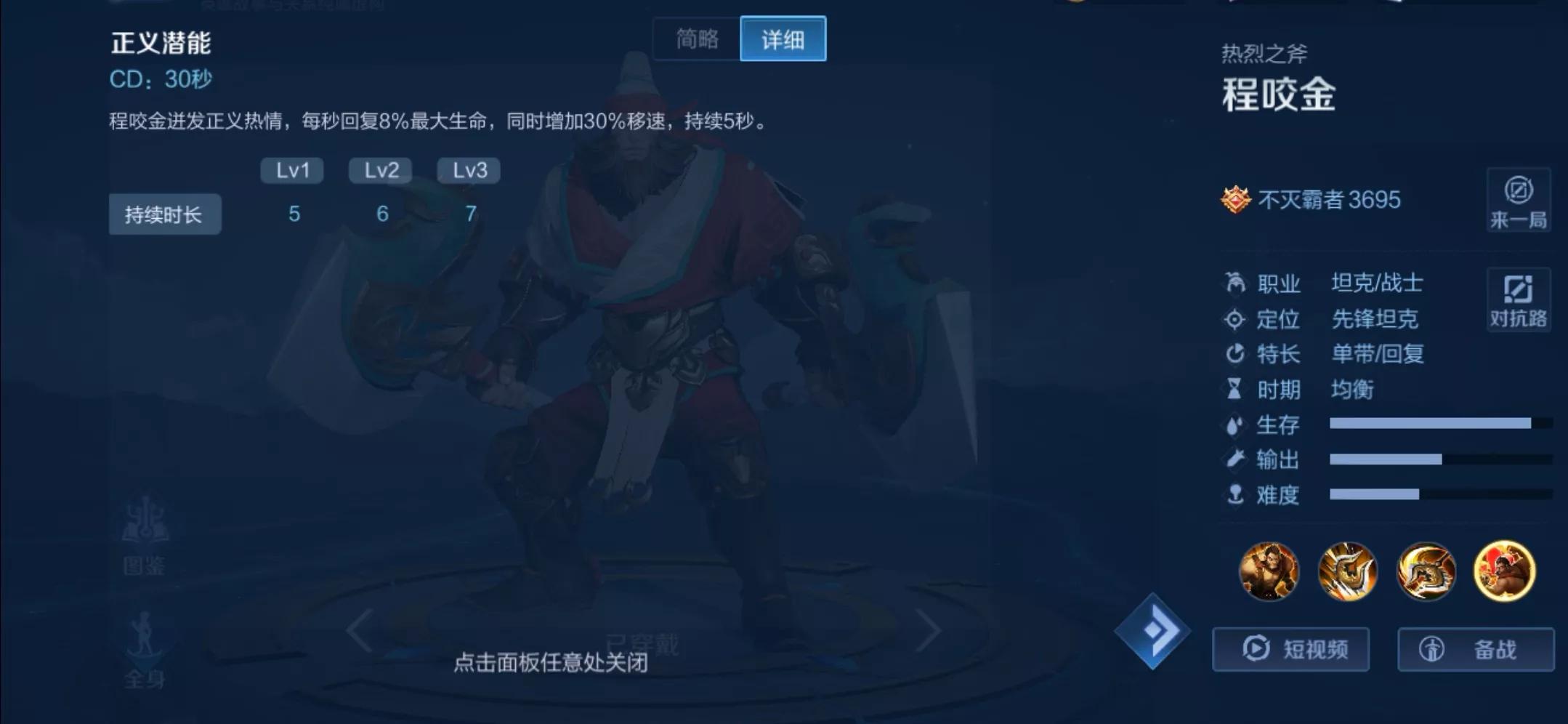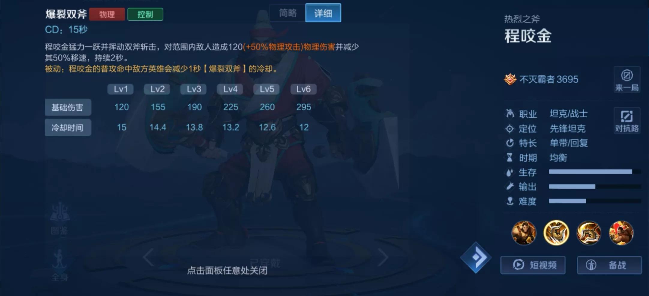 我们先来了解一下程咬金这个英雄先吧