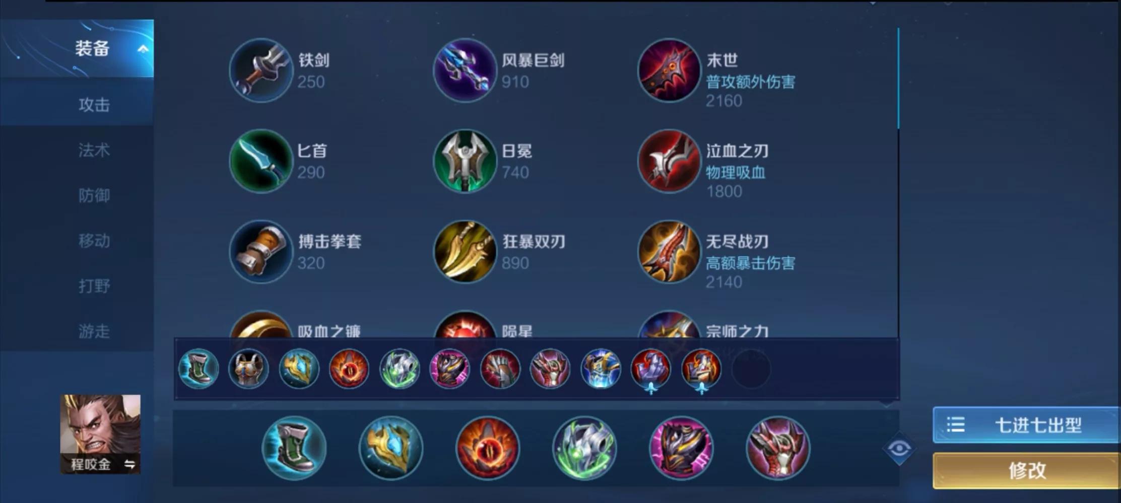 一,肉刀边惩流的出装铭文