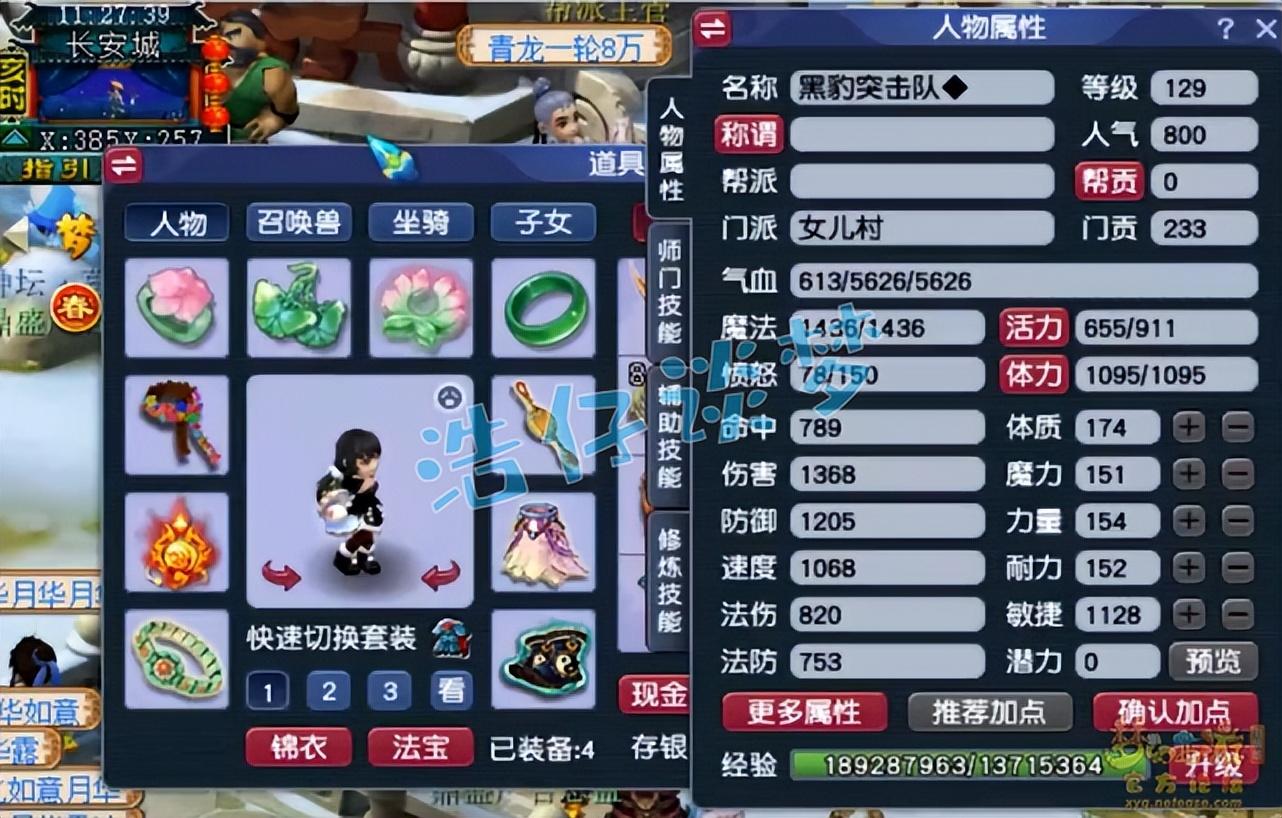 好了,这个129任务女儿村展示完毕,各位想玩任务固伤的玩家可以参考一下。这样搭配起来普通日常任务绝对很效率,如果想杀有难度的任务,那就需要切属性,准备几件特技装备了。
