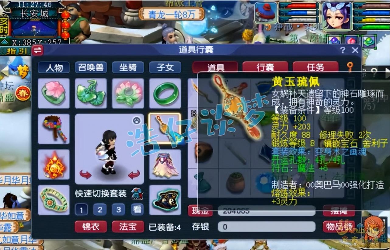 100级画魂套女衣,体敏双加43,打了10锻月亮石。固伤门派的武器和铠甲位置也比较关键,因为敏捷影响固伤,所以大多还是选择高敏属性。