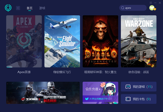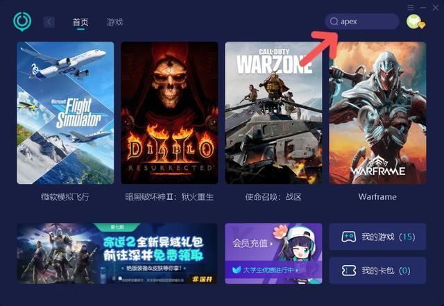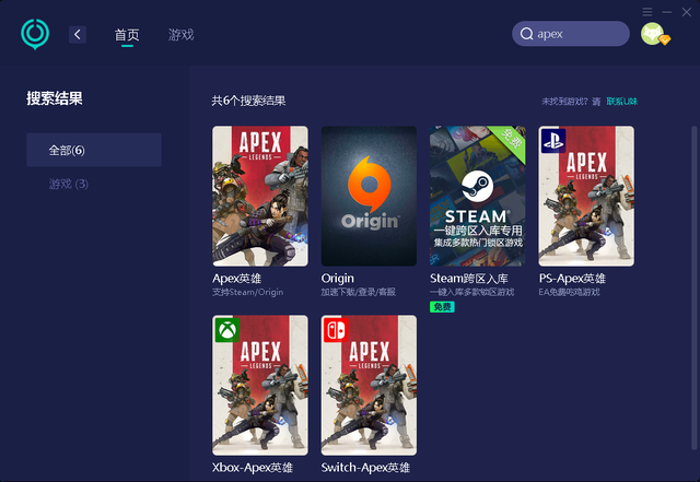 1.启动UU加速器,打开后在搜索框输入Apex Legends