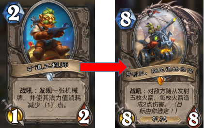 于是可以确定卡组的获胜手段是前期通过过牌和小解牌苟住+不亏牌,中期继续解场+过牌+随从站场,后期则主要护好脸+解场,依靠场面慢慢磨死对手,或依靠重拳先生突然冲脸反杀。