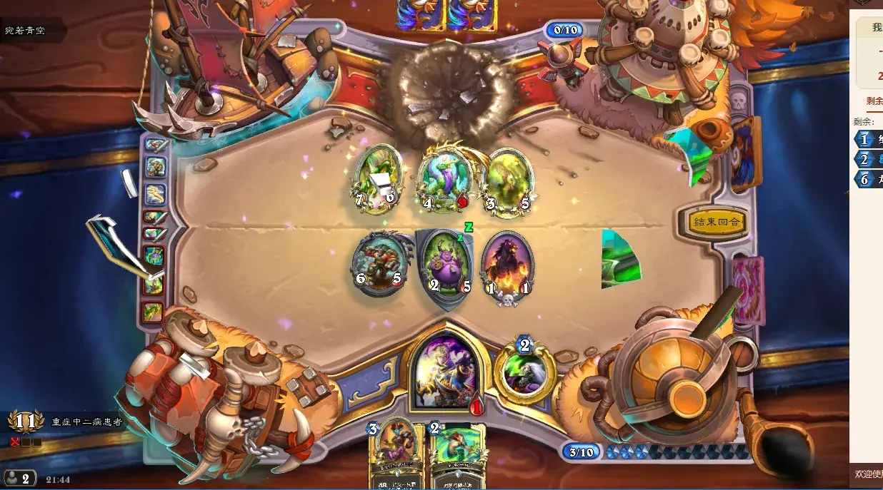 我剩余的几张牌中,既没有群解也没有嘲讽,只有重拳先生反杀才能翻盘。我不得不硬着头皮技能抽牌。